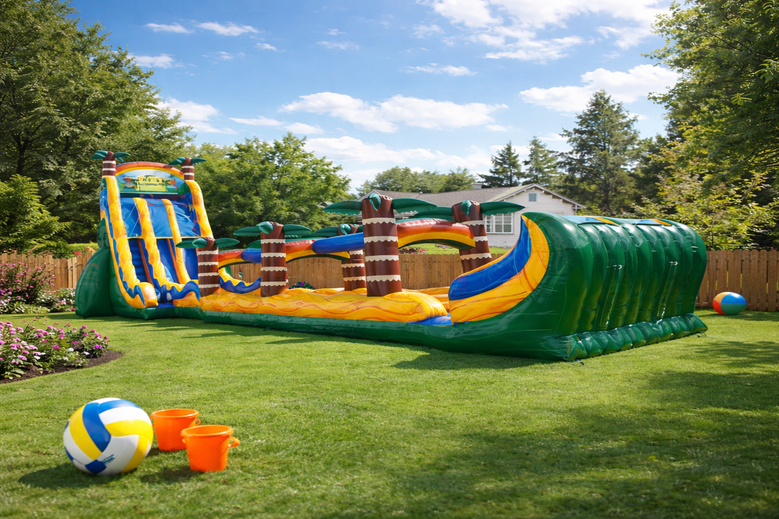27ft tall Tiki Rampage dual lane water slide.