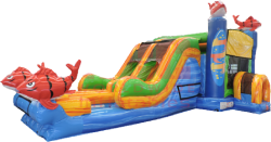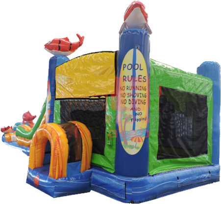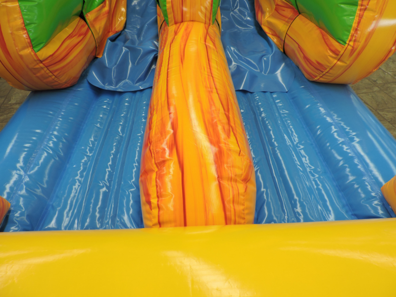 Introducing the Iconic Big Kahuna Dual Lane Wet or Dry Slide - the ultimate inflatable slide experience that brings the excitement of the tropics to your event! With its vibrant Hawaiian colors and seamless slide technology, this slide is designed to provide endless hours of fun for kids and adults alike.