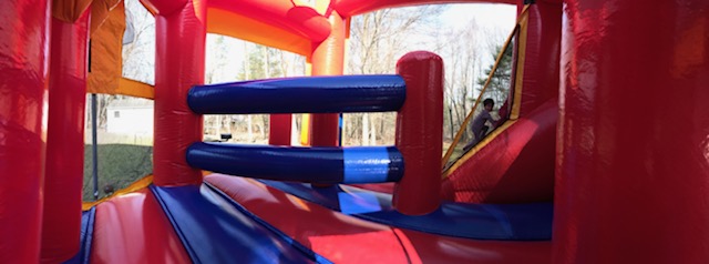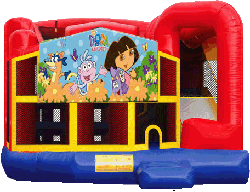 The 5-in-1 combo style bounce house is the ultimate in inflatable jumpers! The large interior jumping area offers a basketball hoop and both log and pop-up obstacles. This bouncy castle has a climb feature and a convenient exit slide for hours of active fun! Parents and spectators are offered a clear view with the 360-degree mesh sides of this moonwalk. The 5-in-1 combo bounce house is made of lite n strong? fire-resistant vinyl for safety, durability and easy portability. This 5-in-1 bouncy house is sure to make any indoor or outdoor event a great success!