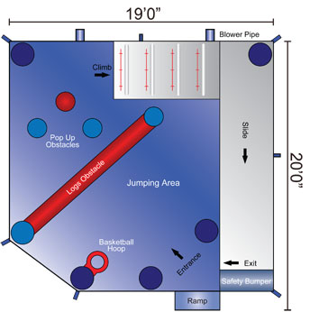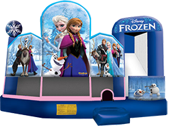 The 5-in-1 combo style bounce house is the ultimate in inflatable jumpers! The large interior jumping area offers a basketball hoop and both log and pop-up obstacles. This bouncy castle has a climb feature and a convenient exit slide for hours of active fun! Parents and spectators are offered a clear view with the 360-degree mesh sides of this moonwalk. The 5-in-1 combo bounce house is made of lite n strong™ fire-resistant vinyl for safety, durability and easy portability. This 5-in-1 bouncy house is sure to make any indoor or outdoor event a great success!