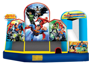 The Justice League encompasses strength, power and courage in this energetic 5-in-1 combo inflatable jumper. With five activities from which to choose, kids can practice their superhero skills alongside Batman, Superman, Wonder Woman, Flash and Green Lantern. This impressive Justice League 5-in-1 combo inflatable jumper offers colorful artwork at every turn, and is sure to draw quite a crowd. This fantastic combo jumper is part of an extensive line of licensed Justice League products, including jumps, interactive games and combos.The 5-in-1 combo style jumper is the best in inflatable bounce houses! The spacious interior jumping area offers a basketball hoop and both log and pop-up obstacles. This bouncy castle has an exciting climb feature and a convenient exit slide for hours of active fun! Parents and spectators are offered easy viewing with the 360-degree mesh sides of this moonwalk. The 5-in-1 combo bounce house is made of lite n strong™ fire-resistant vinyl making a safe, durable and perfectly portable product. This awesome 5-in-1 bounce house is sure to make any indoor or outdoor event a great success!