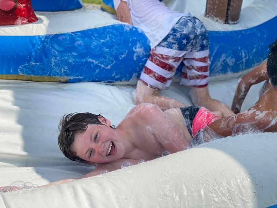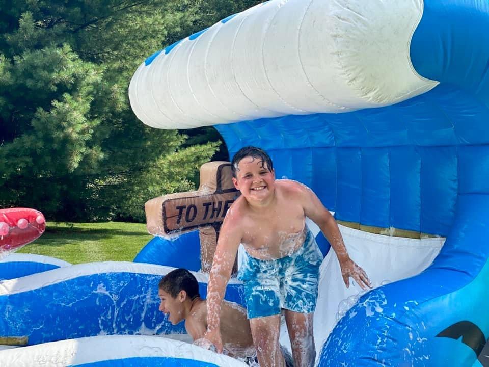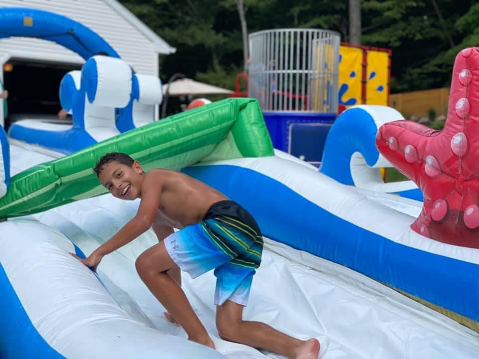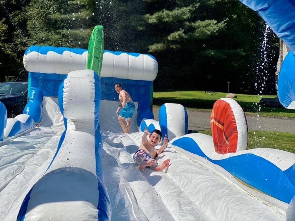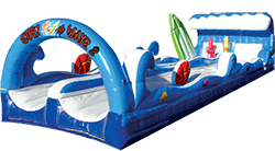 The Surf The Wave wet slide is a great way to promote enjoyable and healthy activity, and will add excitement providing endless amounts of aerobic activity. This two lane slide will keep the kids cool and occupied all day. Our slides are made safe and secure with lite n strong™, fire-resistant vinyl making it safer, portable and more durable. Length: 35'3" Width: 10'7" Height: 8'4" |